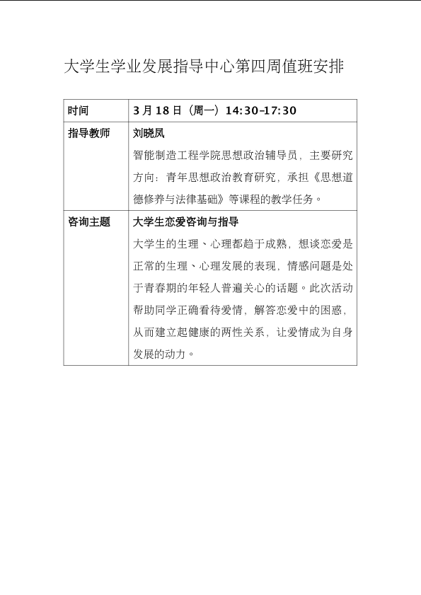 大学生学业发展指导中心第四周值班安排