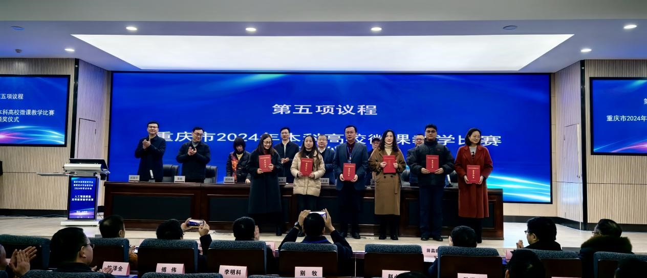 12月27日,重庆市2024年本科高校微课教学比赛颁奖大会暨重庆市高等教育学会教育技术专业委员会2024年学术年会在重庆医科大学举行。马克思主义学院曾老师、经济管理学院漆沫沙老师团队作品荣获一等奖,文化传播与设计学院秦媛老师作品荣获二等奖,师范学院张玲老师等5个团队作品荣获三等奖,学校荣获优秀组织工作奖,程华老师荣获优秀组织个人奖,在获奖数量上取得新突破。